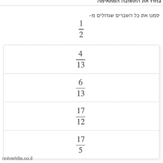 חיבור שברים ל-1 שלם