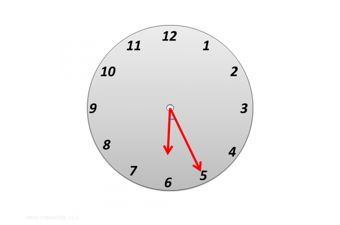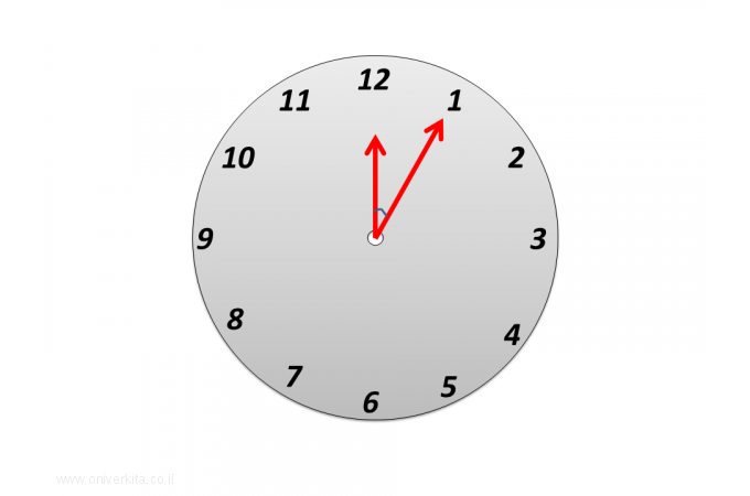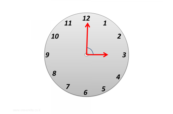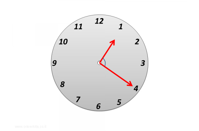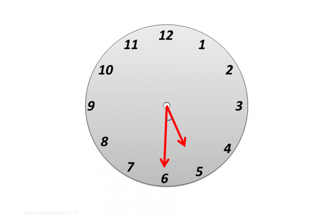 מהי להערכתכם גודלה של הזווית שבין שני המחוגים?