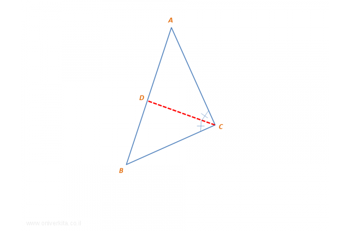 לפניכם משולש. מה ניתן לומר על הקטע הצבוע באדום?