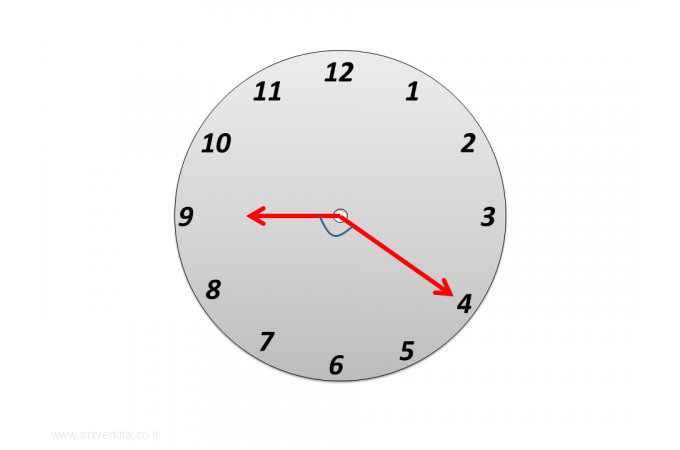 מהי להערכתכם גודלה של הזווית שבין שני המחוגים?