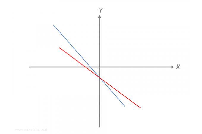 אם משוואת הישר הכחול היא: \[\begin{aligned} y=7x+6 \end{aligned}\] מה עשויה להיות משוואת הישר האדום?