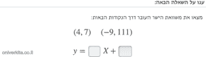בניית משוואת הישר בעזרת שיפוע ונקודה