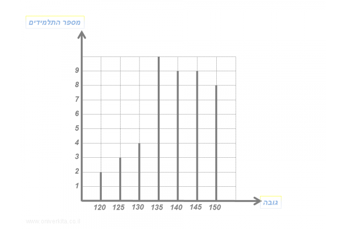 בדיאגרמת המקלות מתוארת התפלגות הגבהים של תלמידים בכיתה ז'. כמה תלמידים הם בגובה 160ס"מ?